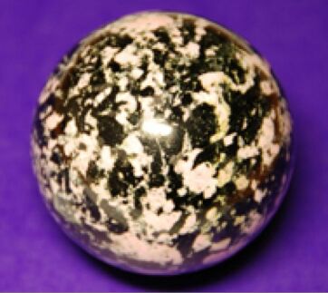 Габротулит (цитата с сайта "Редкие камни"): "Это разновидность цоизита розового цвета (тулита) с черными пятнами горной породы габбро". Так что догадка оказалась верная.)
