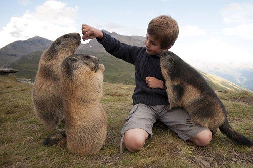 Восьмилетний австрийский мальчик подружился с самыми застенчивыми животными, обитающими в Альпах - сурками. Пугливые сурки не боятся ребенка, потому что чувствуют любовь.