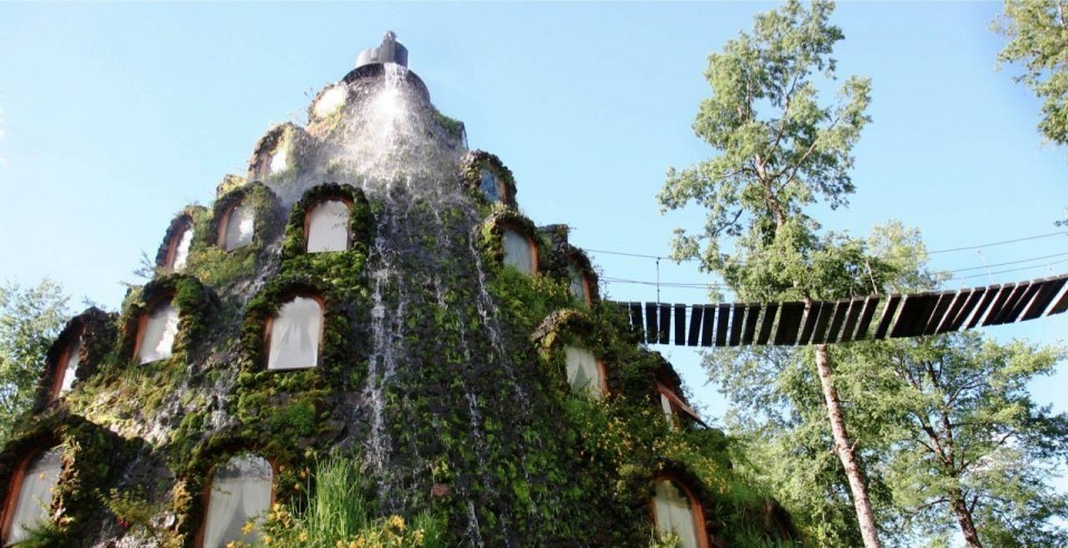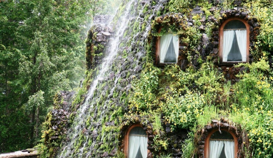 Волшебный горный домик (Montaña Mágica Lodge) — это красивый отель в частном владении Huilo Huilo в Чили. Отель открывает ворота в мир природы. Похожий на вулкан домик вместо лавы извергает освежающий водопад.