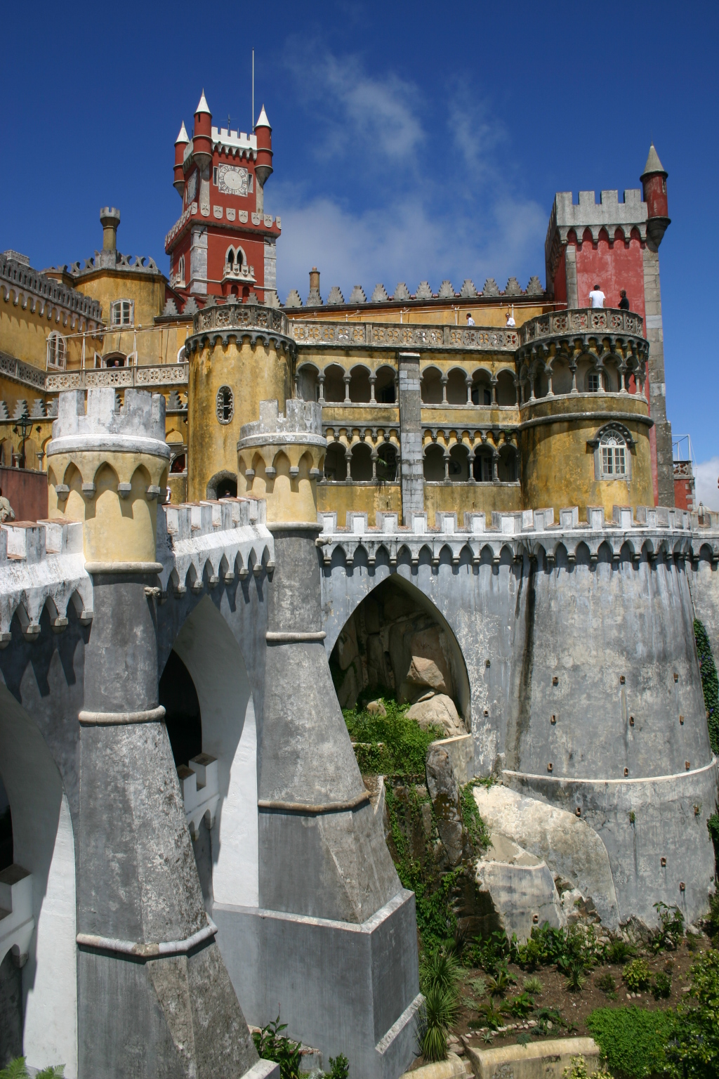 Дворец Пена (Palacio Nacional da Pena) - дворец в Португалии, находится на высокой скале над Синтрой и отличается весьма фантастическим псевдосредневековым стилем. Вся композиция из горы, замка и прилегающего парка площадью 270 гектаров равными новых из более ранних образцов романтической ландшафтной архитектуры XIX века. Замок и парк возникли в 1840 году как летняя королевская резиденция на месте маленького заброшенного монастыря в стиле мануэлино. Строительство организовал Фердинанд фон Саксен-Кобург-Гота, на самом деле, португальский принц, муж королевы Португалии Марии II. Он вложил вероятно в данный проект очень большие средства, и работы продолжались до самой его смерти в 1885 году. Дешевые на первый взгляд внутренние помещения с убранством сохранены в том виде, в каком их оставила последняя владелица, королева Амелия, вынужденная бежать из Португалии в 1910 году.