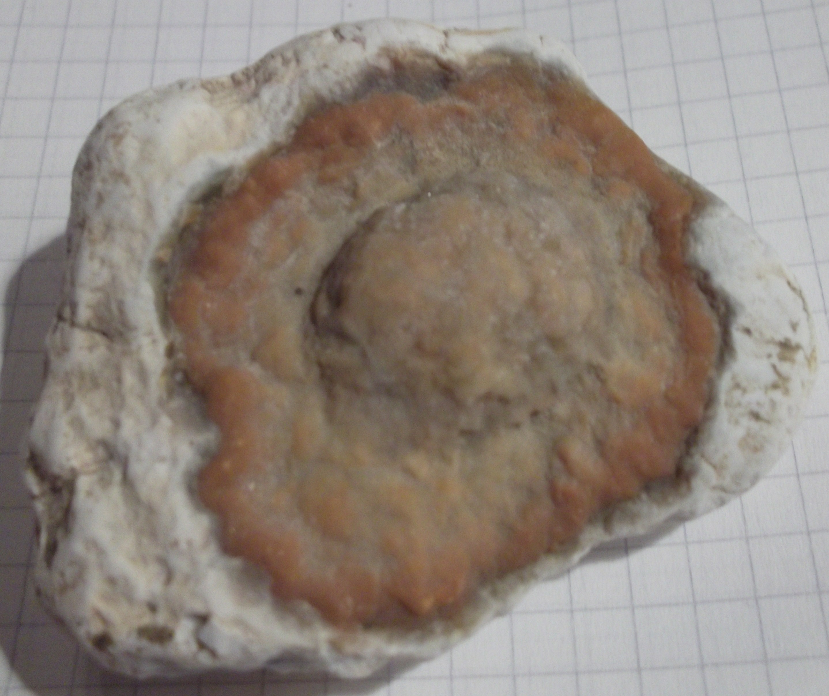 Всем - здравствуйте! В праздники гуляли на природе и нашли вот такую красоту. А что это? Сами не знаем. Но понравилось и притащили их домой. В большом белом камешке просматриваются крылышки. Там же есть и вкрапления, которые переливаются как снег на солнце. Но сфотографировать не получилось. А красно-рыжие это кто? похоже на сталактиты... а на сколе другой цвет и другая "фактура" и местами переливается, как снег на солнце - это, может, соль выступила? Но мы их хорошенько помыли щеточкой перед фотографированием. Подскажите, что мы нашли?