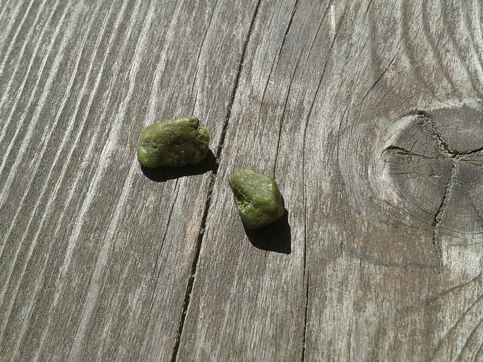 2. Зелёненькие камушки. При возюканьи туда-сюда иголкой, удалось оставить царапину. Стекло не царапает.