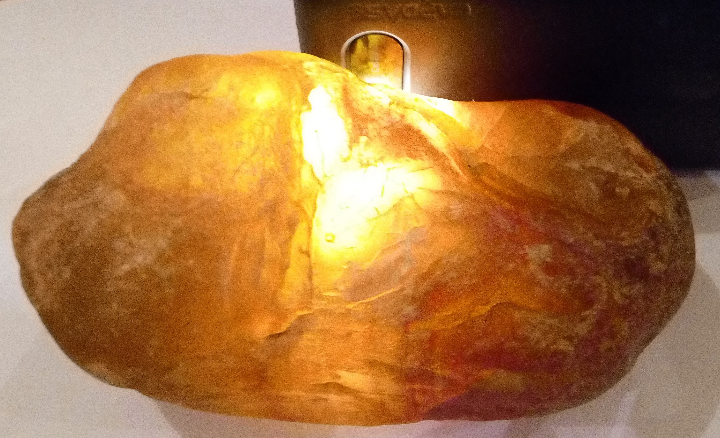 Помогите определить что за камень, ножом не царапается, если его подсветить цвет у него от зелено желтого до красного.