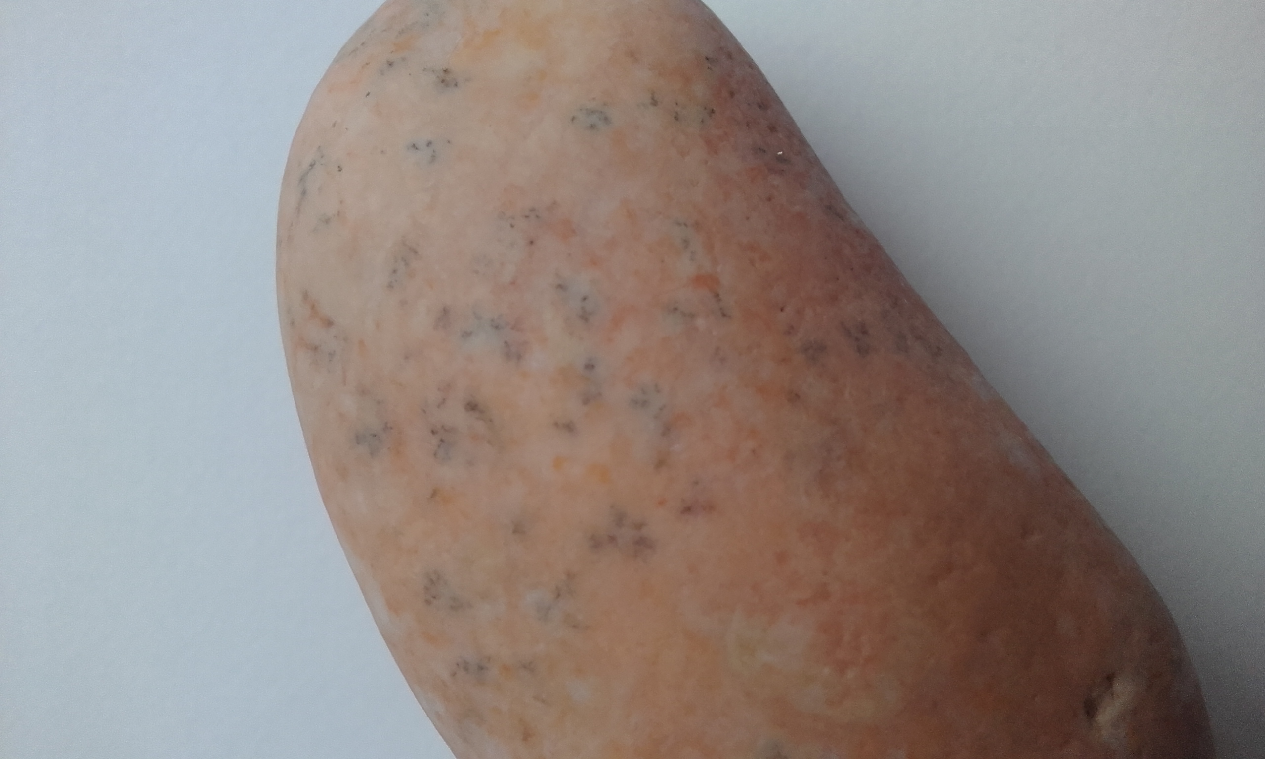 Здавствуйте! Нашли камешек в словенских горах. Точнее у устья реки. Помогите пожалуйста определить что за камень. Он царапается ножом при усилии, при небольшом размере 5×3 см достаточно тяжелый. Цвет у него даже не розовый а скорее бледно лососевый. Спасибо заранее!!!