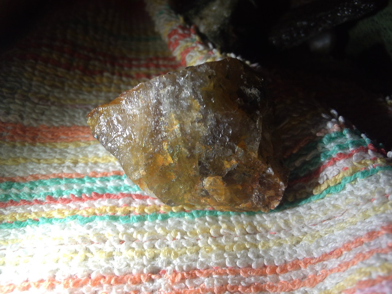 Камень твёрдый. Сталью не поцарапался. Кристалл кварца тоже лишился нижней кромки при попытке поцарапать. Вершинкой я не рискнула царапать- кварц обижать не хотелось. В общем, твёрдость- плюс/минус как кварц.