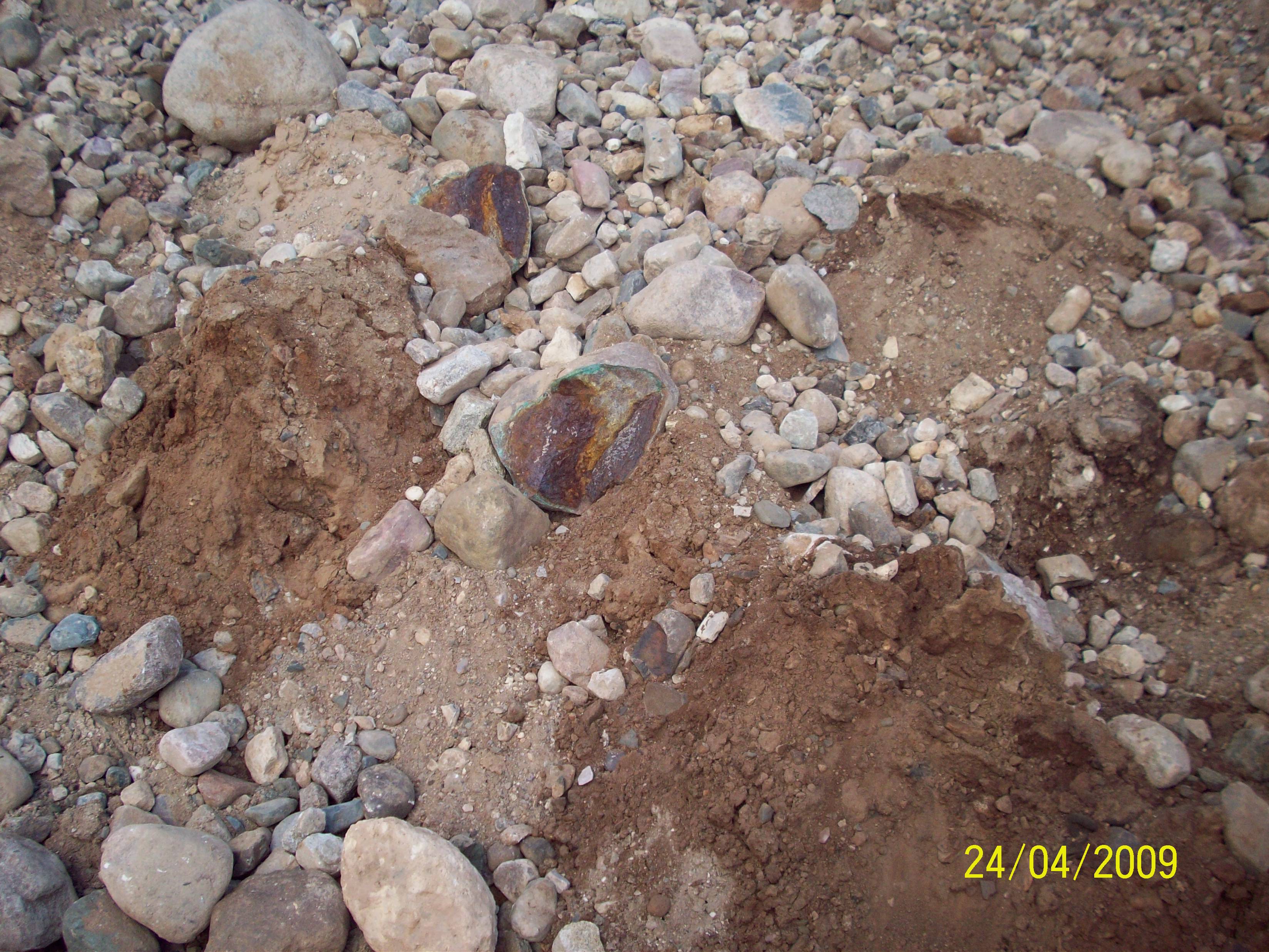 Здесь мы видим сильно ожелезненную горную породу, ржавчина в этих бульниках концентрируется вдоль трещин. Если эти булыжники колотить дальше, то можно заметить, что где присутствовали трещины - все ржавое, а где трещин не было - свежая порода.veshiy писал(а):А как быть в моем случае