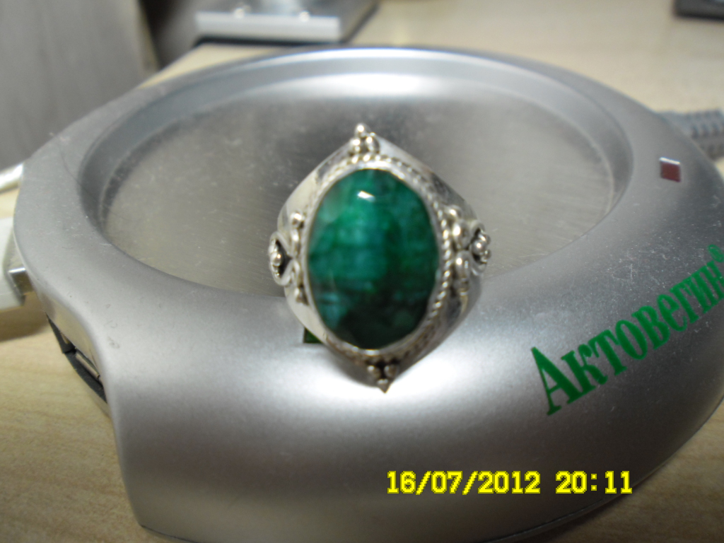 есть конечно вероятность, что это зелёный берилл не ювелирного качества...., но... но.. но..., да и оправа, слишком простецкая для берилла.