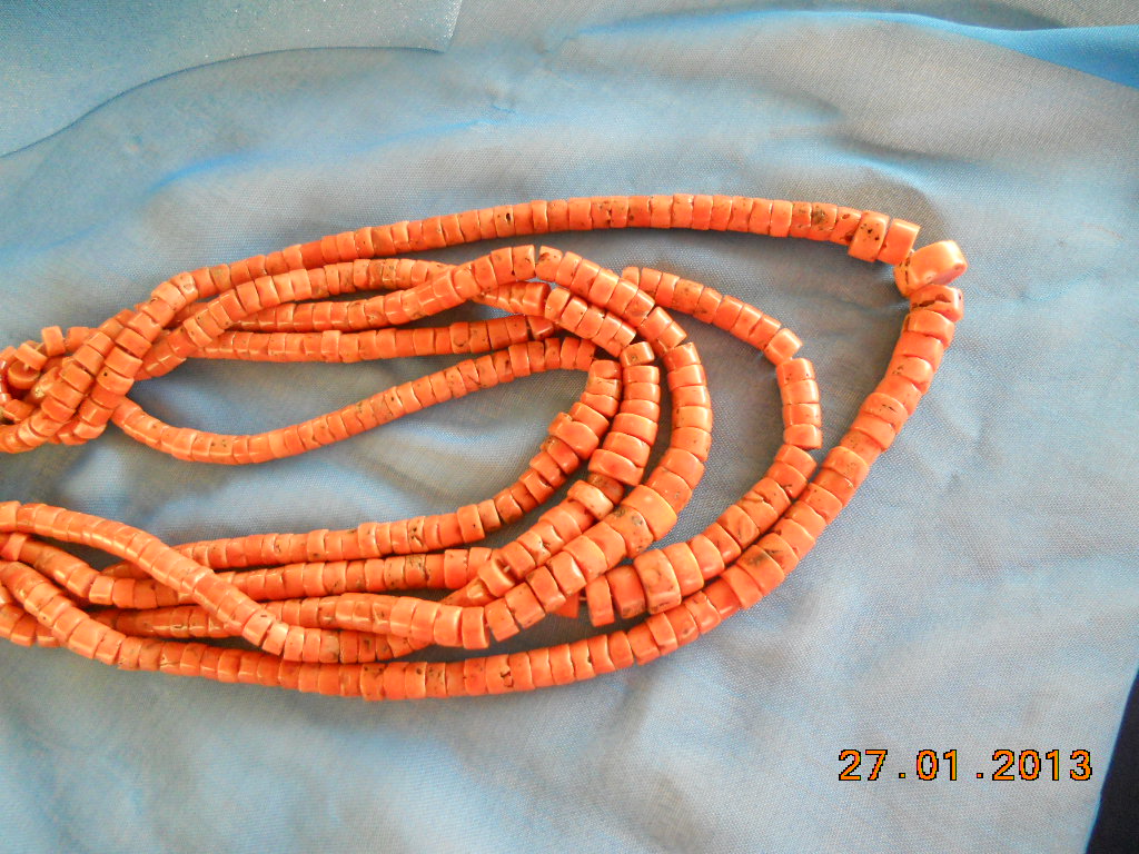 Помогите,пожалуйста,определить,из какого камня сделаны бусы,которые передала мне мама,а ей достались от бабушки.Бусы тяжёлые оранжевого цвета с тёмными пятнышками и местами трещинами и дырочками.В Украине в старину не могла девушка выйти замуж без бус,и они передавались по наследству... Как узнать,сколько им лет? Спасибо.