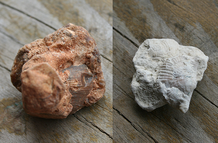 Был в деревне у истока Волги. Копался в карьере, насобирал окаменелостей. Что-то нашли хозяева дома. Интересно. что скажут знатоки - что за звери мне попались?