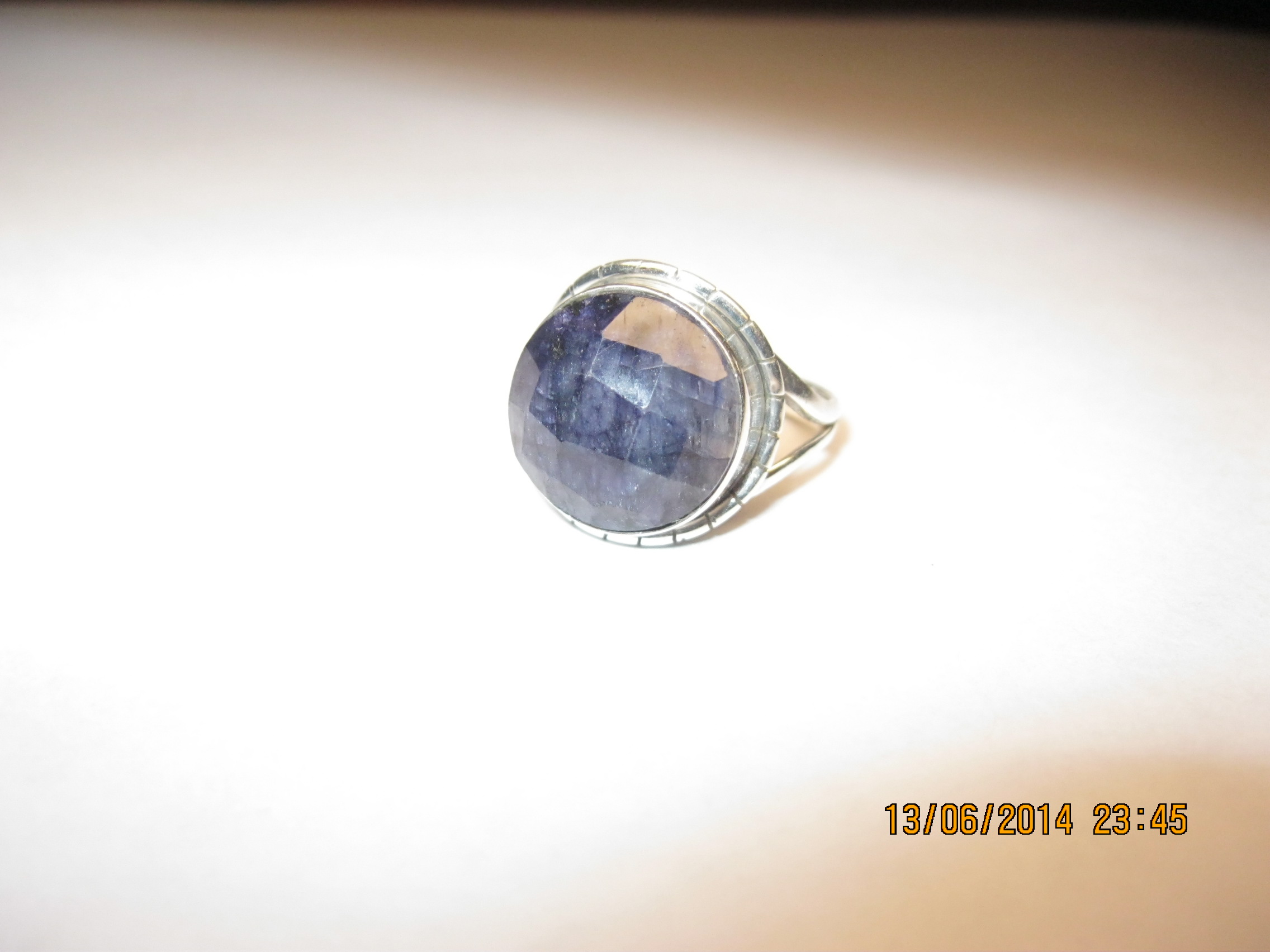 Здравствуйте. Помогите, пожалуйста, определить камень в колечке. Кольцо из Индии, оправа - серебро, совсем не дорогое. Подарок, в общем. Огранка примитивная, не симметричная. Как я сам догадываюсь, цвет, скорее всего искуственно усилен, а может и вообще "создан". Понимаю, что по фото трудно определить, но все же, скажу только,что получилось похоже, единственное, в реале цвет темнее, насыщеннее. Что это, хотя бы приблизительно, шпинель, аметист, топаз, просто булыжник, куда искать?