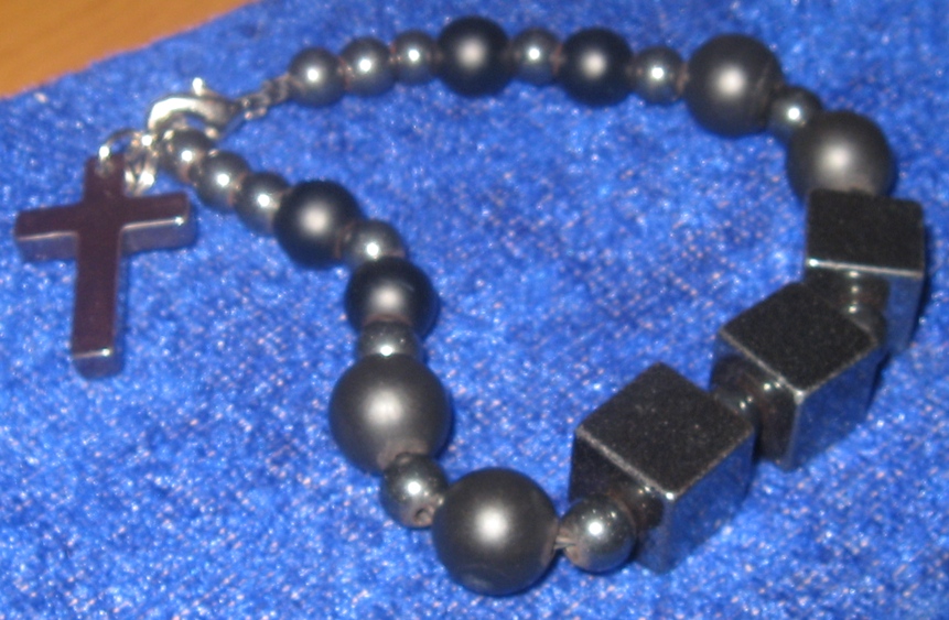 А тот гематин, что на браслете-скрепки и прочую ерунду магнитит. А в браслет собрала - свойства утихомирились. Раньше к себе тащили всё, что не попадя. Сейчас не так тянут.