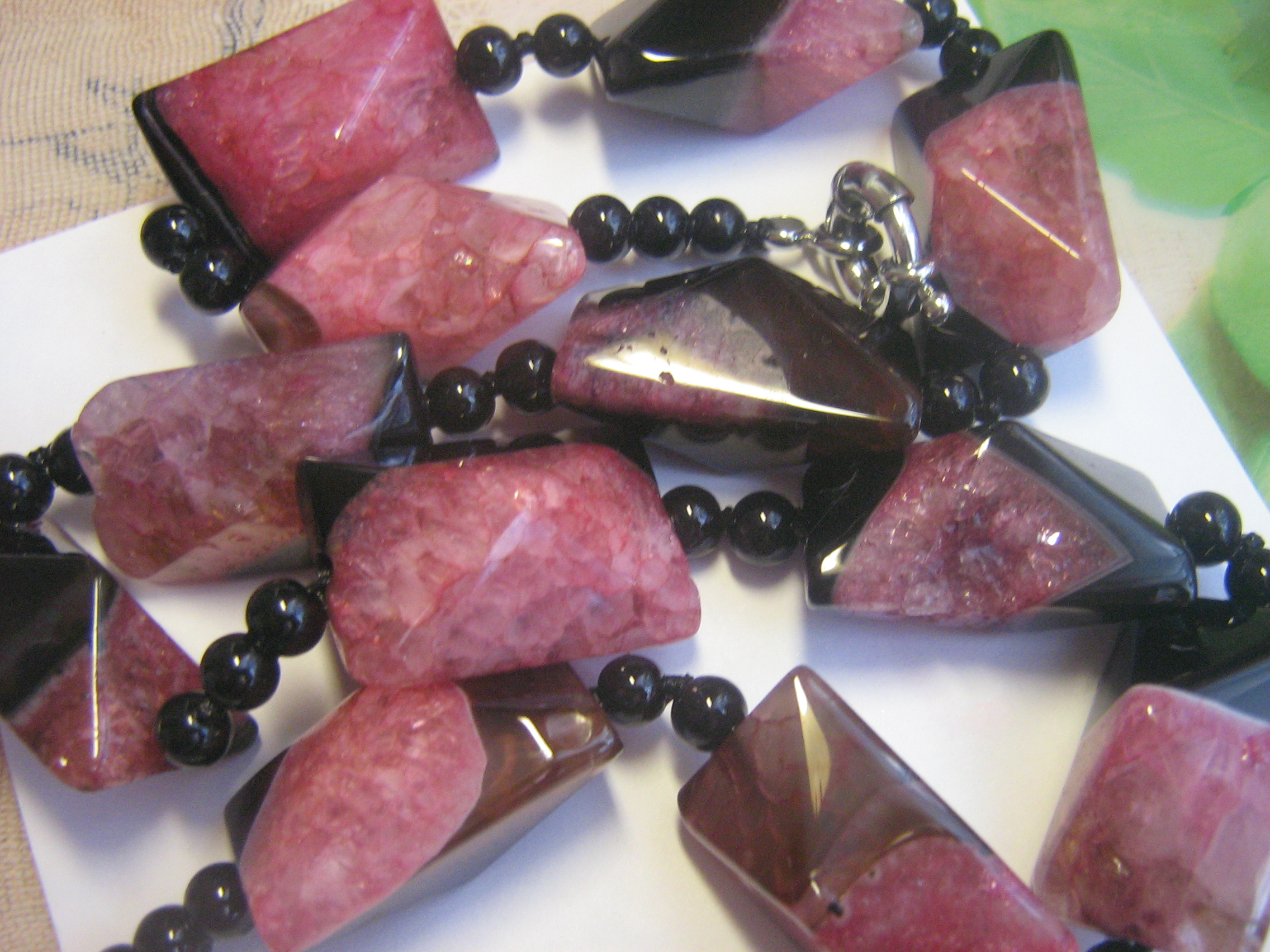 Пришла домой, помыла, стала разглядывать и подумала, что это крашеный кварц. Я права? Но на одной из бусин это жеода?? Что скажете, форумчане??