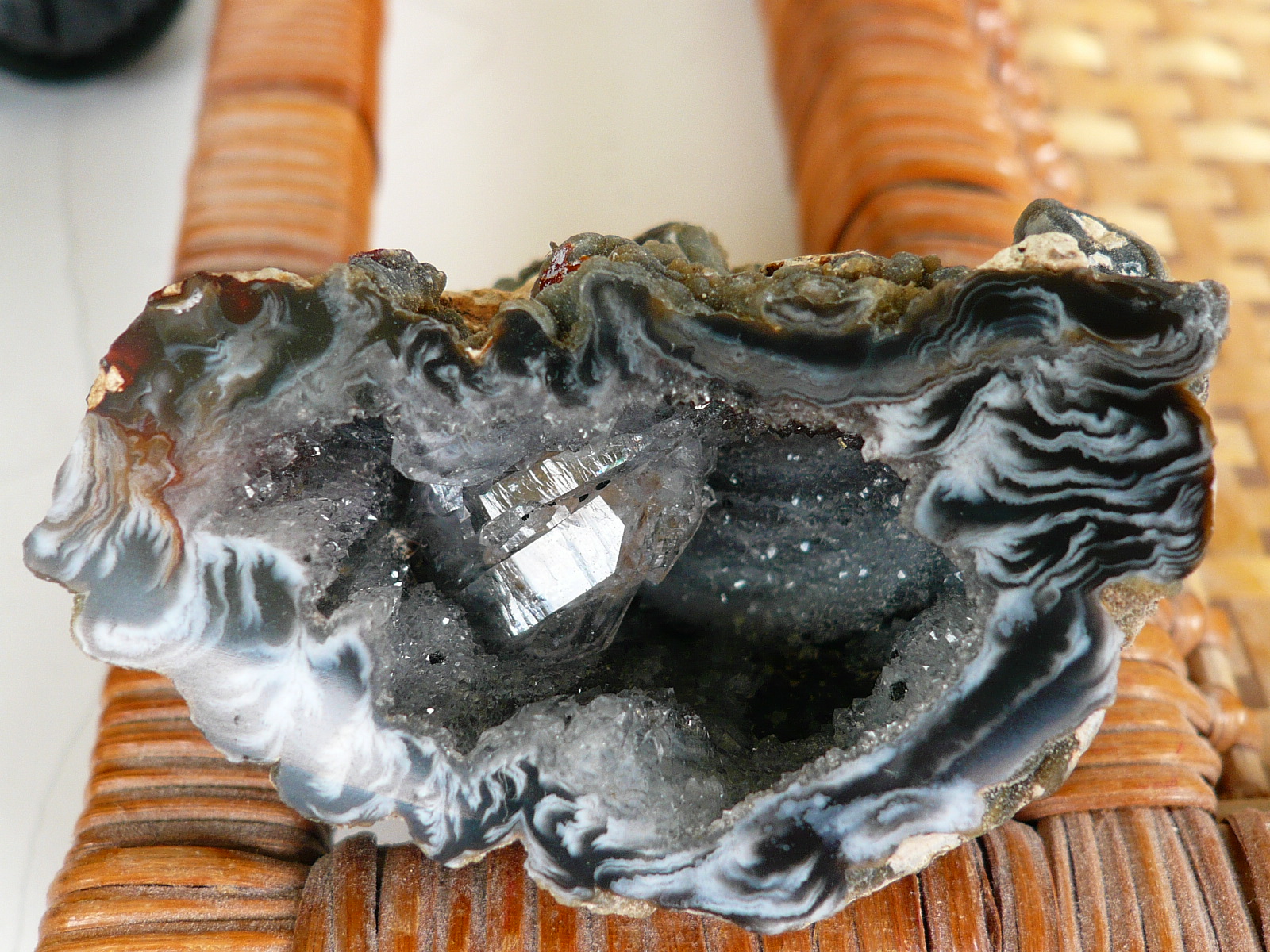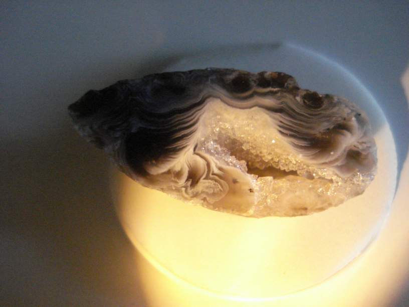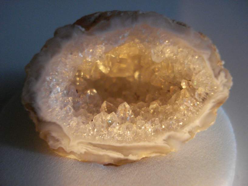 В общем, я сделала так - луч от фонаря направила внутрь жеодки, одновременно фотографируя...