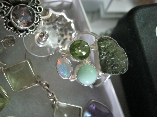 ОООБОЖАЕМОЕ мною колечко с молдавитом, хризопразом, перидотом и опалом.