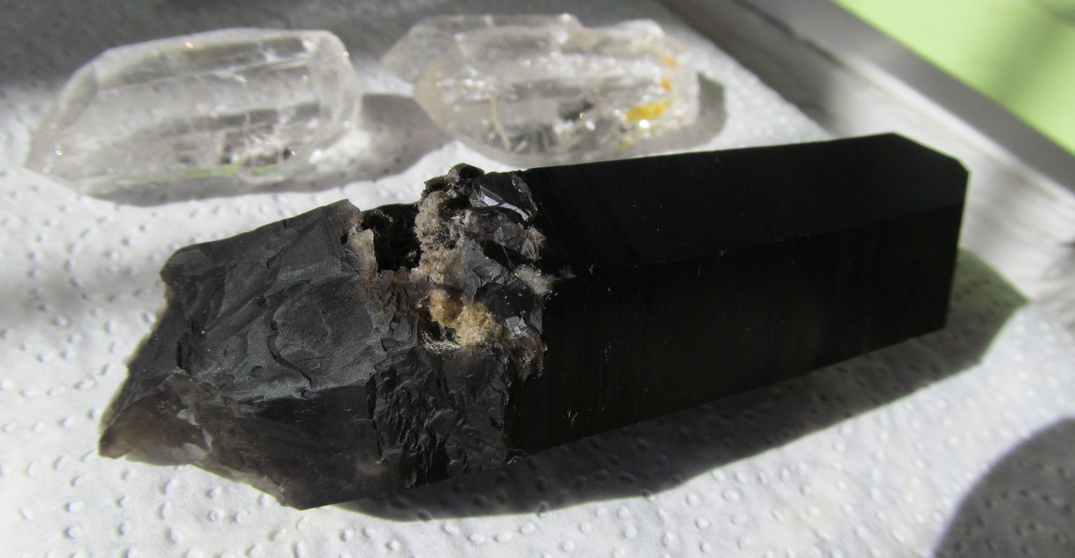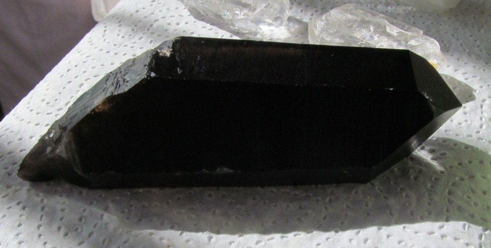 У меня просто мания была купить морион... На выставке приобрела, сказали, что из Кахастана. Два дня штудирую форум и все темы про морион. :jokingly: Многие знания - многие печали. :hahaha: Обнаружила, что маленький скол на грани у моего кристалла именно белесый... вот и растерялась... Сейчас фотку покажу.