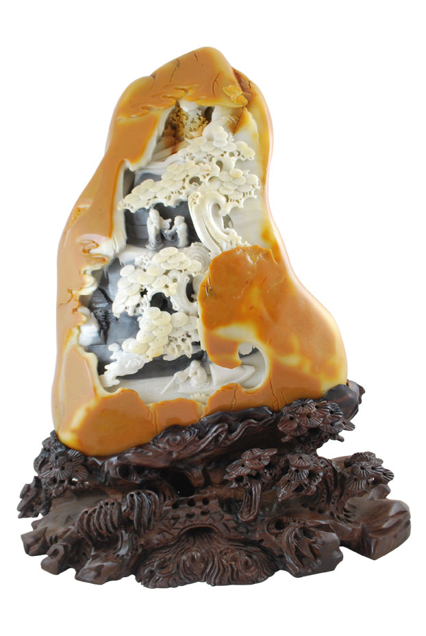 Китайский Шушан, камень назван по имени деревушки, в районе которой его добывают. Происхождение вулканическое, по твёрдости 6. Копают на рисовых полях на глубине 1-3 м. В Китайской медицине используют его порошок, так как он содержит множество минеральных веществ.
