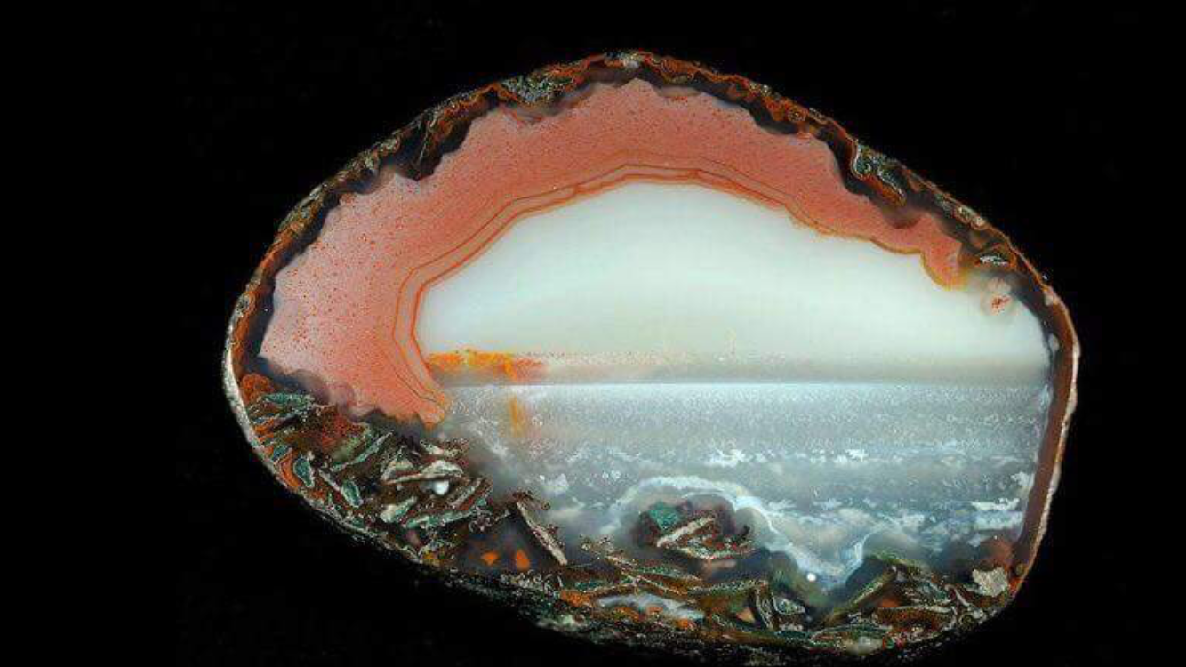 DiamonD, та часть, которую вы видите как рисунок - это агат, а полость с кристаллами - жеода. Жеода образуется на агатовой или халцедоновой основе. В камне распределение может быть в любых пропорциях между жеодой и основой: жеоды бывают большими с тонкими стенками, а могут быть совсем мелкими. Но в любом случае запомните, что есть что, и не путайте себя и народ.