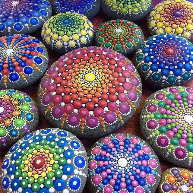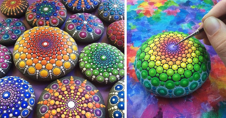 Это работы Элспет Маклин из Австралии. Она находит плоские камни на пляже и рисует на них.Очень светлые и потрясающие мандалы.