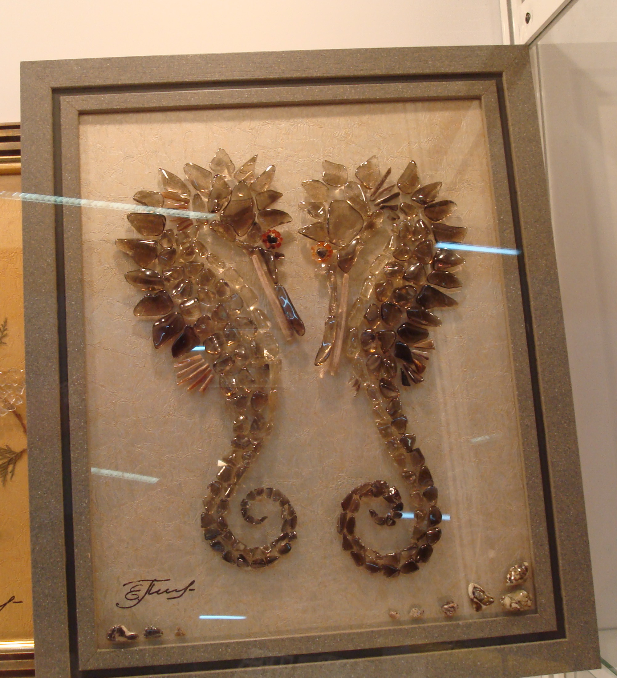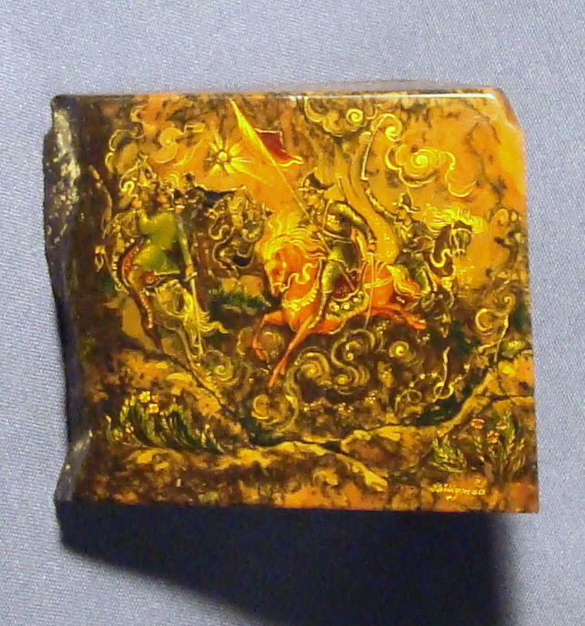Миниатюры (размер 8х8 см.) вписанные в рисунок родонита. Подпись "В.Шутов", истории не знаю, достались "с аукциона"...
