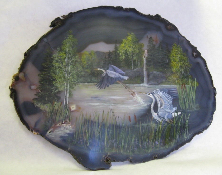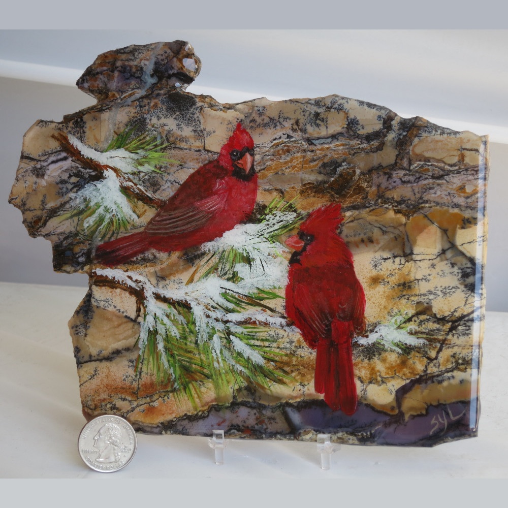 Вчера случайно наткнулась на работы одной художницы из Колорадо Syl Lobato. Она рисует на камнях, в основном на яшме и агате.