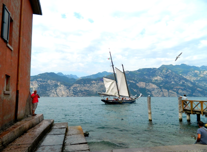 Очень мне понравился город Мальчезине. Бывшая деревушка рыбаков, как и все города на побережье Гарды, сохраняет средневековый стиль. но при этом у каждого города свое лицо. У меня сложилось впечатление, что Мальчезине - город художников, скульпторов, мастеров художественной ковки. Как у всякого уважающего себя города провинции Тренто, у Мальчезине имеется своя крепость.