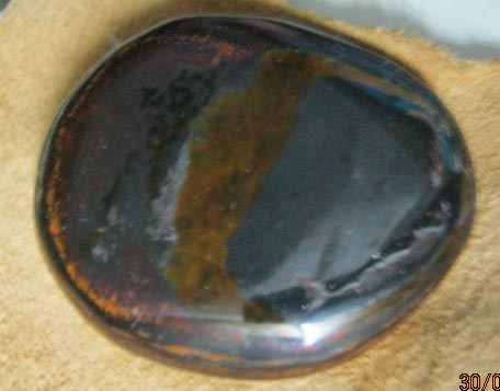 В общем, пришел мой камень Питерсит сегодня. Открыла посылку прямо на почте и о ужас, разочарование – темный, невзрачный с темно–темно подсиня стороной и рыжеватыми в ржавчину разводами на другом бочке, единственно, что явно выделялось – это восьмерка. Я разочаровалась и расстроилась, пожалела, что купила.