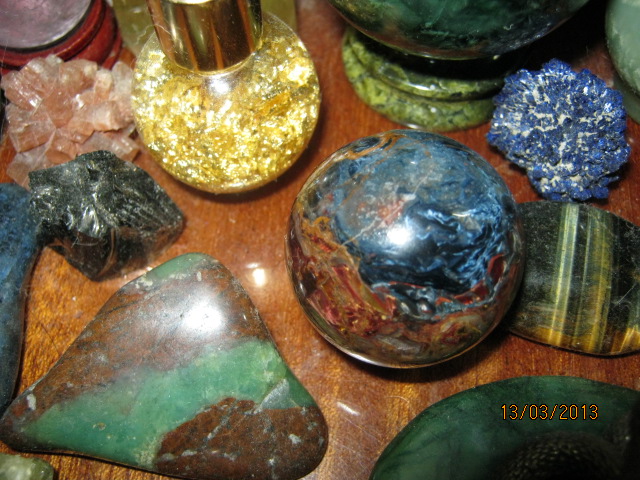 Красота, восхищение, сразу сняло сожаление о покупке… потрясающе!!! Сейчас стоит невзрачненький, никак не выделяясь среди других камешков, с блеклыми тонами, но зато хороший и любимый камушек, думаю в солнечном свете он себя проявит. Вот фото среди всех на скорую руку… Фото со вспышкой и поэтому он изволил немного заиграть красками.