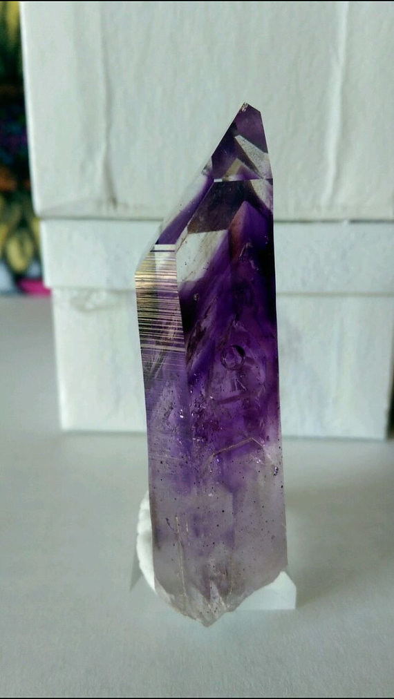 Вот кристалл типичный для этого месторождения. Размеры: 7.3x3.6x2.3 см. У него 6Solomon писал(а):фишка кристалла, как я понимаю, в сочетании определенных включений. Такой аметист может возникнуть где угодно, важно, чтобы при его формировании, возникали соответствующие условия.