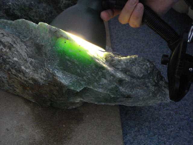 Я точно не знаю, но предположу, что это предпродажная демонстрация вида камня на просвет. Для того, чтобы показать камень "во всех видах". Просвечивающийся нефрит ценится дороже.