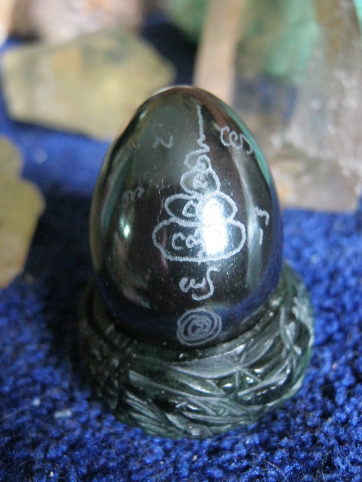 Ну очень похоже на гематит-магнетит... Только яйцо очень тяжелое по сравнению, допустим, с гематитовым браслетом. Магнетит-браслет тяжелее, чем гематит-браслет, но яйцо не имеет магнитных свойств, в отличие от колечка, но при таком небольшом объеме - тяжелее, чем даже браслет из магнетита... :)