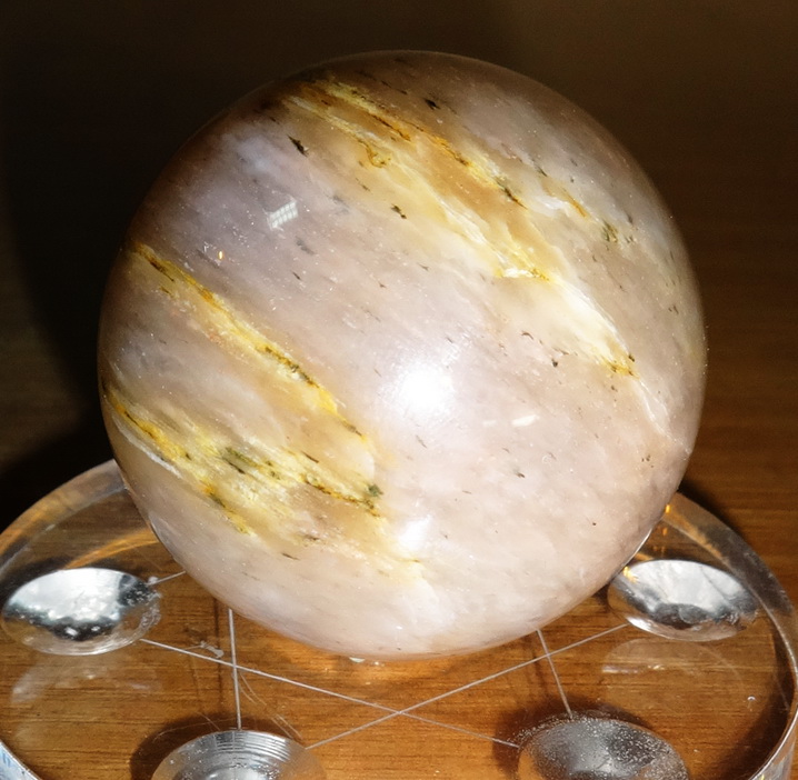 Вот такой себе шарик. Простой, из украинского розового кварца. Приглянулся он одной даме, та возьми его и купи. Всё хорошо, но есть у дамы «наставник духовный» от рэйки и верный друг – маятник. А при покупке шарика она и про одного и про второго забыла. Бывает…