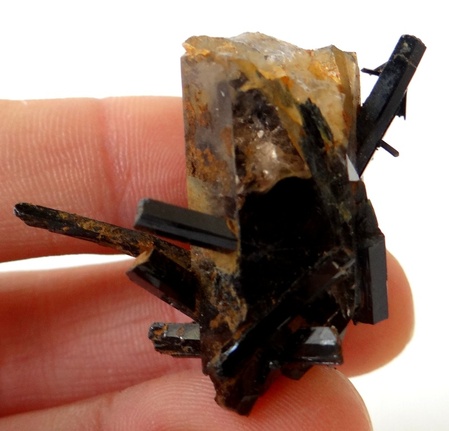 Это оказался эгирин в дымчатом кварце, Малави, Африка.