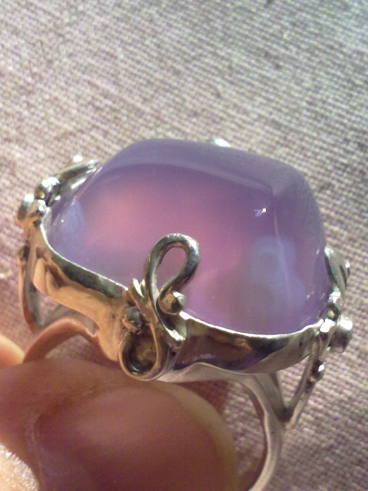 Удивительный камень,халцедон какое богатство оттенков в их чудесной дымчатой глубине! Голубой камень дает покой и хороший сон,смотрю на него и как-будто ныряю в холодную глубину,аж дух захватывает!Серый халцедончик,скорее камень полета,на просвет в нем угадываются горы и летящая над ними птица.Серый-это лишь название,а сколько в нем оттенков: голубой, зеленоватый и тут же тёплый,желтовато-оранжевый,один цвет перетекает в другой,как в туманной дымке!Лиловый халцедон у меня недавно,и о нем я знаю мало:он из Африки и фантастически красив!Очень редкий камень,если кто-то знает что-нибудь о подобном камне,поделитесь пожалуйста любой информацией! Наверняка у кого-нибудь тоже есть халцедоны или его разновидности,давайте соберём в этой темке его фото,и знания об этом чудесном камне!