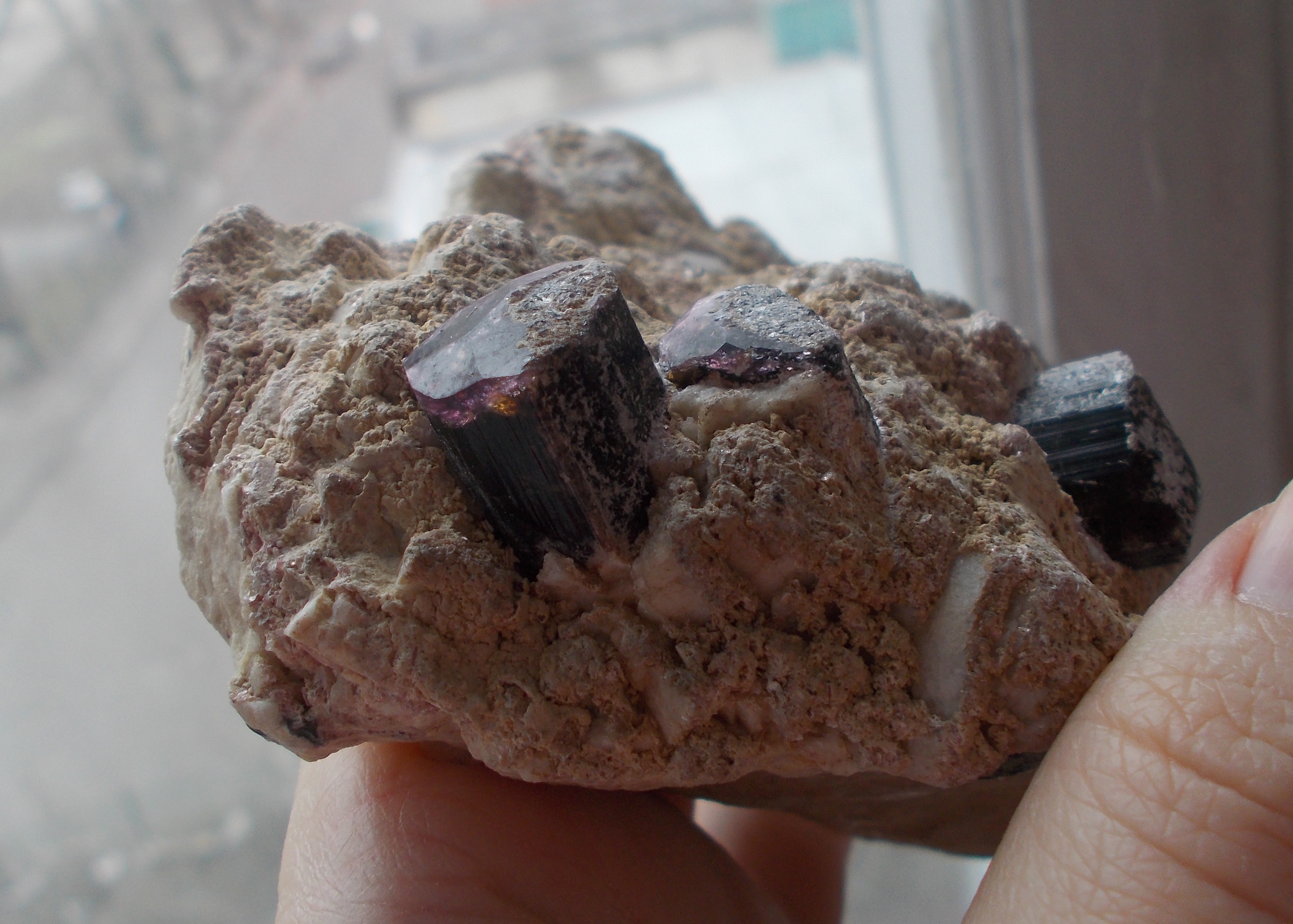 Кристаллы турмалина с сиреневыми головками в полевом шпате с цеолитом, 120*100*50мм, Малхан.продан