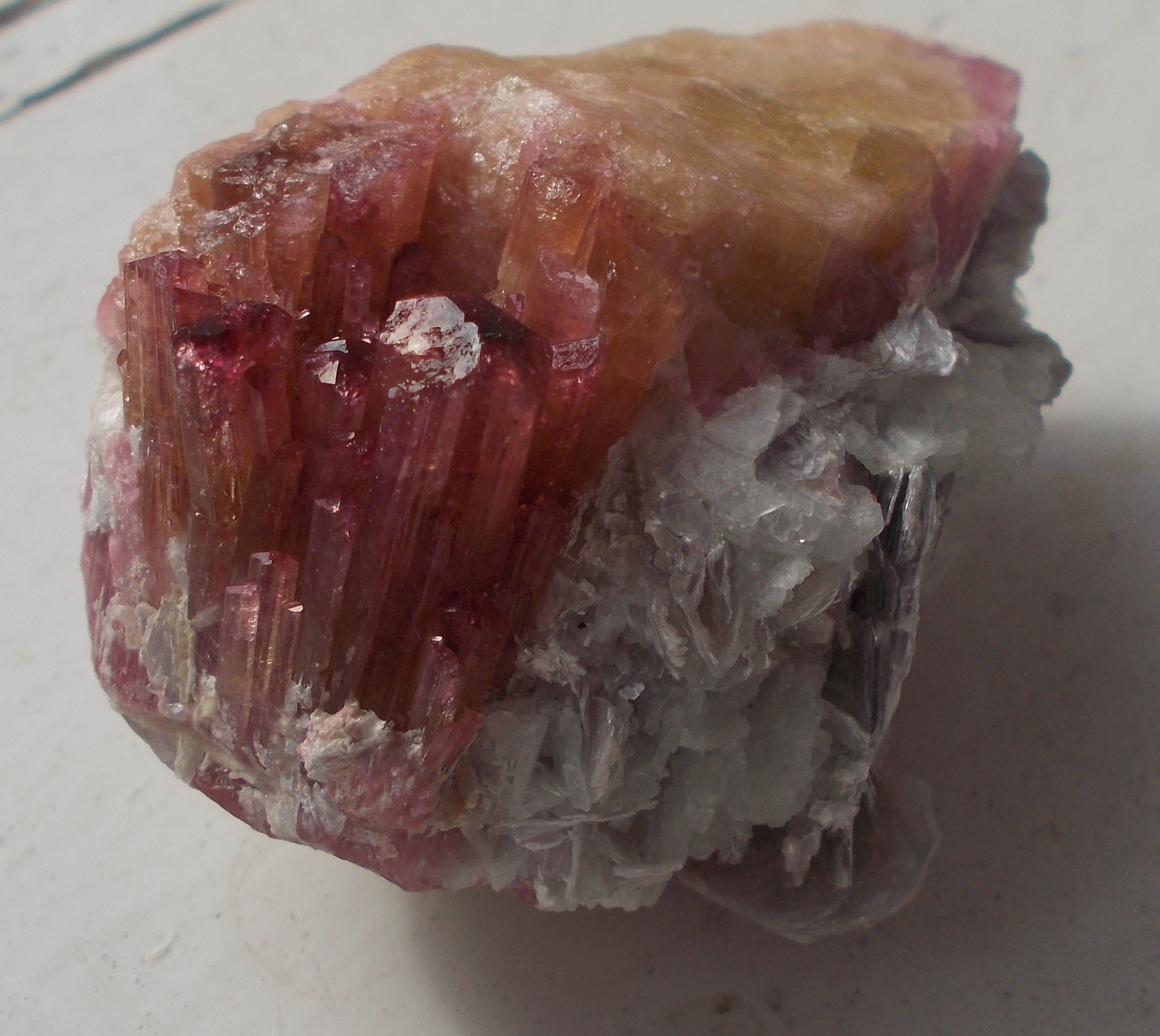 Сросток кристаллов полупрозрачного полихромного турмалина, клевеландита и лепидолита на непрозрачном полихромном турмалине, 55*37*30мм, Малхан, Забайкалье. "Цветочек"!!))) обменян