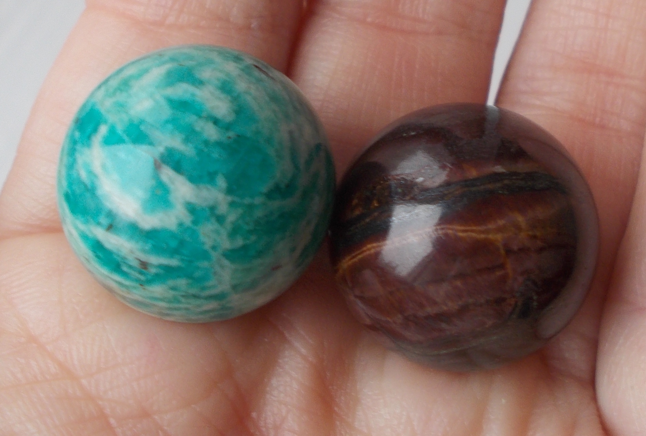 Великолепный дуэт по 20мм: кварцевый кошачий глаз+яркий амазонит