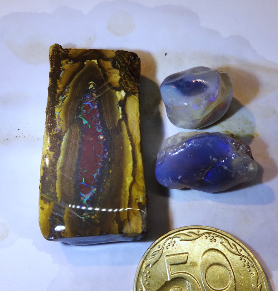 2 лота сырья австралийских опалов. 500 гривен за три камня. Тут и хвалить нечего, камни известные, не Африка, хорошо обрабатываются. Каждый лот - 7 грамм.