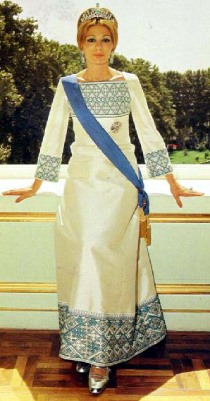 Корона единственной коронованной жены шаха Ирана Фары Пехлеви ( до нее правители Персии своих жен не короновали).Корона была создана Van Clef and Arpels в 1964г. Корона сделана из белого золота и покрыта зеленым бархатом, ее украшают 38 изумрудов, 34 рубина и 1469 бриллиантов.