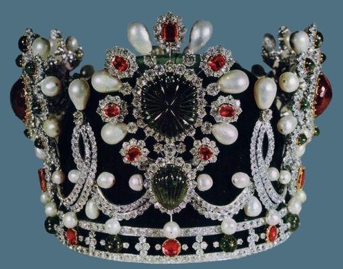 О бирюльках и ювелирном деле немножко. На снимке корона иранских шахов династии Пехлеви. Корона была создана в 1925г. Основы:золото,серебро и красный бархат.Украшена 3380 брильянтами и поэтому корону называют бриллиантовой.Среди них выделяется 60-ти каратный желтый бриллиант. Тремя рядами из 369 жемчужин почти одинаковой формы подчеркнут контур короны. В короне имеются 5 крупных изумрудов,самый большой из которых в 100 карат красуется на вершине короны.