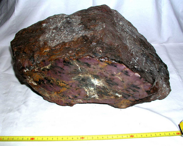 Еще один огромный камень. Не порезанный. Корунд, найденный на Мадагаскаре (по всей видимости - в Андиламене, хотя точной информации нет) в 2003 году. Идентификация подтверждается актом геммологической экспертизы. До сих пор в целом виде. Под огранку его не покупают из за невысокого для огранки качества.