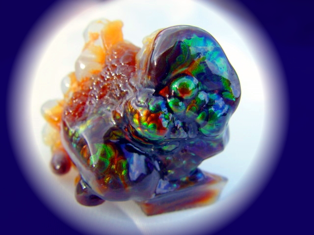 Огненный агат - единственный природный камень, обладающий своим "огненным" эффектом от природы. Причем - только тот агат, который произошел из его "родных" мест в Мексике или Аризоне. Агаты с подобным эффектом из любой другой точки земного шара, также как и "огненные" опалы подобного вида, получили свои "огненные" эффекты в результате серьезного технологического процесса облагораживания. Такие "огненные" агаты и опалы геммологи называют матричными. В качестве матрицы - подложки изпользуется отполированная кварцевая основа, на поверхность которой напыляется тонкий слой окислов металлов. Игра цвета у таких камней подчас сумашедшая, но... нет глубины, нет трехмерности.. Ну и о "бычьих глазах" речь тоже не идет - свои собственные, как в зеркале, несложно рассмотреть..