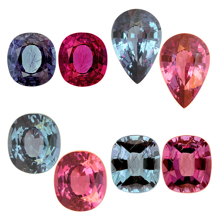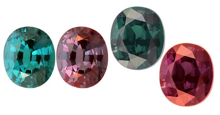 Единственный драгоценный камень, обладающий сходным с александритами и по цветовой гамме, и по силе эффектом смены цвета. Голубой или зеленый днем при естественном освещении, гранат становится ярко пурпурным или красным вечером под лампой или свечей. Но гранат этот может похвастаться еще кое-чем, чего нет даже у александрита! Цвет граната очень медленно, плавно меняется с сине-зеленого утром до пурпурно красного вечером даже при освещении солнечном! К сожалению, этот эффект заметен тем сильнее, чем ближе к экватору находится наблюдатель. В России в более или менее полной мере это можно, наверное, наблюдать только на самом юге или высоко в горах.