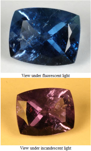Известен также флюорит с эффектом смены света. Изредка встречается (чаще всего - в Казахстане) розовый флюорит, меняющий свой цвет при искуственном освещении на светлый пурпурный или фиолетовый. В Канаде, в известном месторождении Мадог в провинции Онтарио регулярно попадается флюорит с сильным эффектом смены цвета с синего на красно-пурпурный.