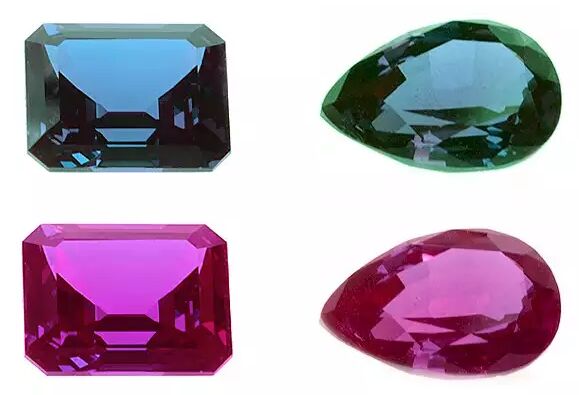 Есть ещё один фактор, позволяющий индентифицировать "советский" александрит без участия геммолога. В цветовой гамме всех таких александритов обязательно присутствует фиолетовый цвет, который ещё никогда не был обнаружен у природных александритов.