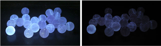 Слева длинноволновый УФ, справа коротковолновый УФ.