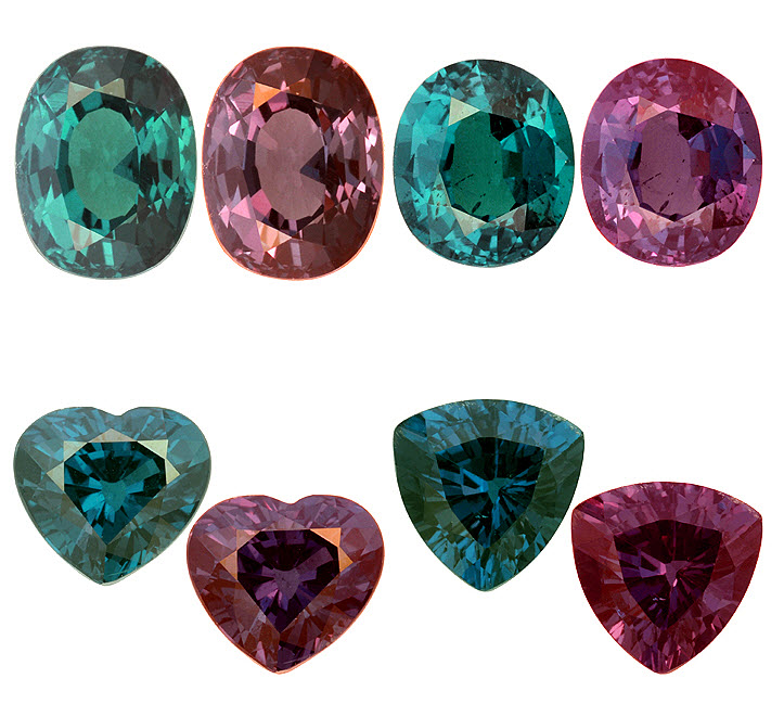 Единственный драгоценный камень, обладающий сходным с александритами и по цветовой гамме, и по силе эффектом смены цвета. Голубой или зеленый днем при естественном освещении, гранат становится ярко пурпурным или красным вечером под лампой или свечей. Но гранат этот может похвастаться еще кое-чем, чего нет даже у александрита! Цвет граната очень медленно, плавно меняется с сине-зеленого утром до пурпурно красного вечером даже при освещении солнечном! К сожалению, этот эффект заметен тем сильнее, чем ближе к экватору находится наблюдатель. В России в более или менее полной мере это можно, наверное, наблюдать только на самом юге или высоко в горах.