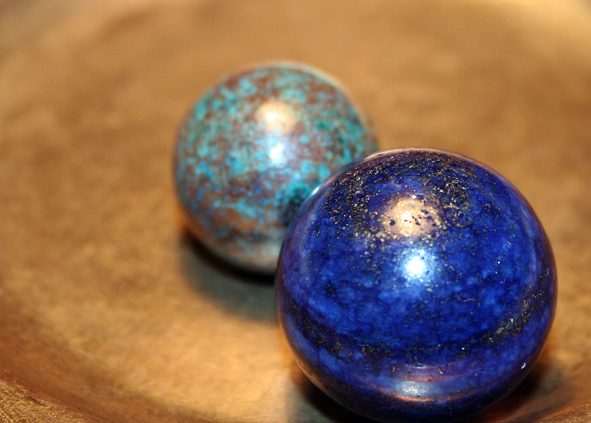 Хризоколла и лазурит (шары), золотой опал, малютка авантюрин, малютка дымчатый кварц, хризопал