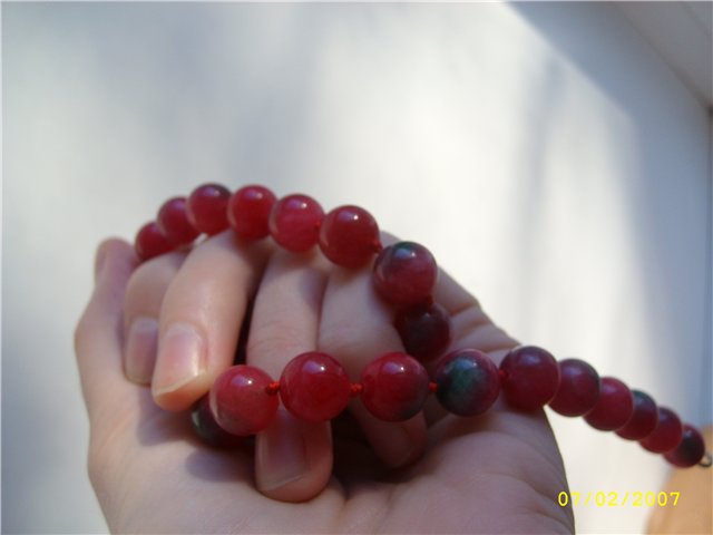 привет, всем :) сегодня стала тоже счастливой обладательницей "турмалина" :lol: у него ярко- малиновый насышенный цвет и изумрудно- зеленый цвет, наблюдается переходы цвета, на всех бусинах по разному, тяжелый, холодный на ощупь. нет полосок как у агата, непрозрачный. провела эксперименты :lol: знач...