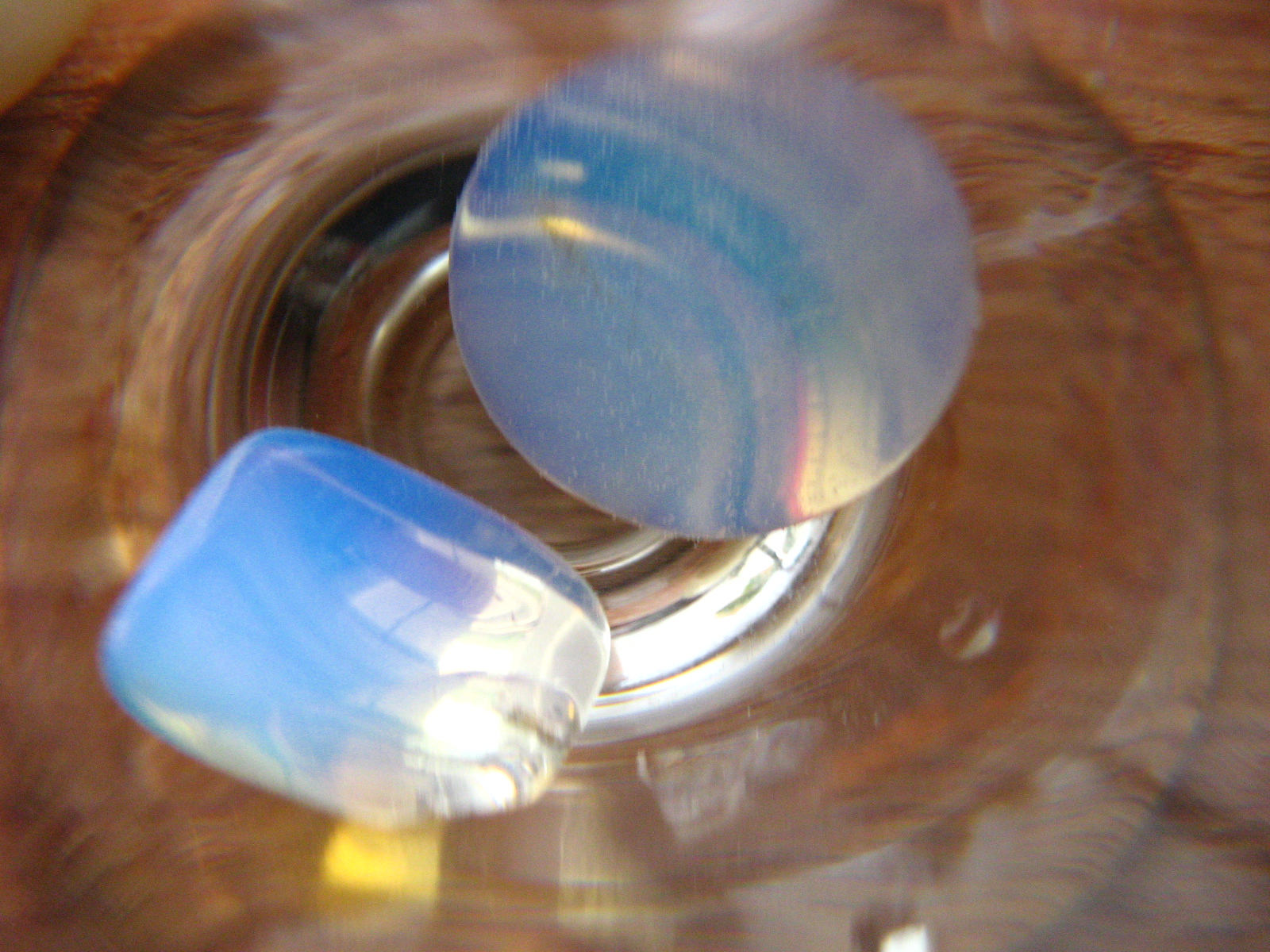 Оба камушка, к сожалению, стекло, его еще опалитом называют-у меня уже на них глаз наметанный. Вреда от него никакого не будет-оно нейтрально. Но вот огонь лучше регулировать натуральным лунником, чаще встречается белый плагиоклаз, я о них писала.