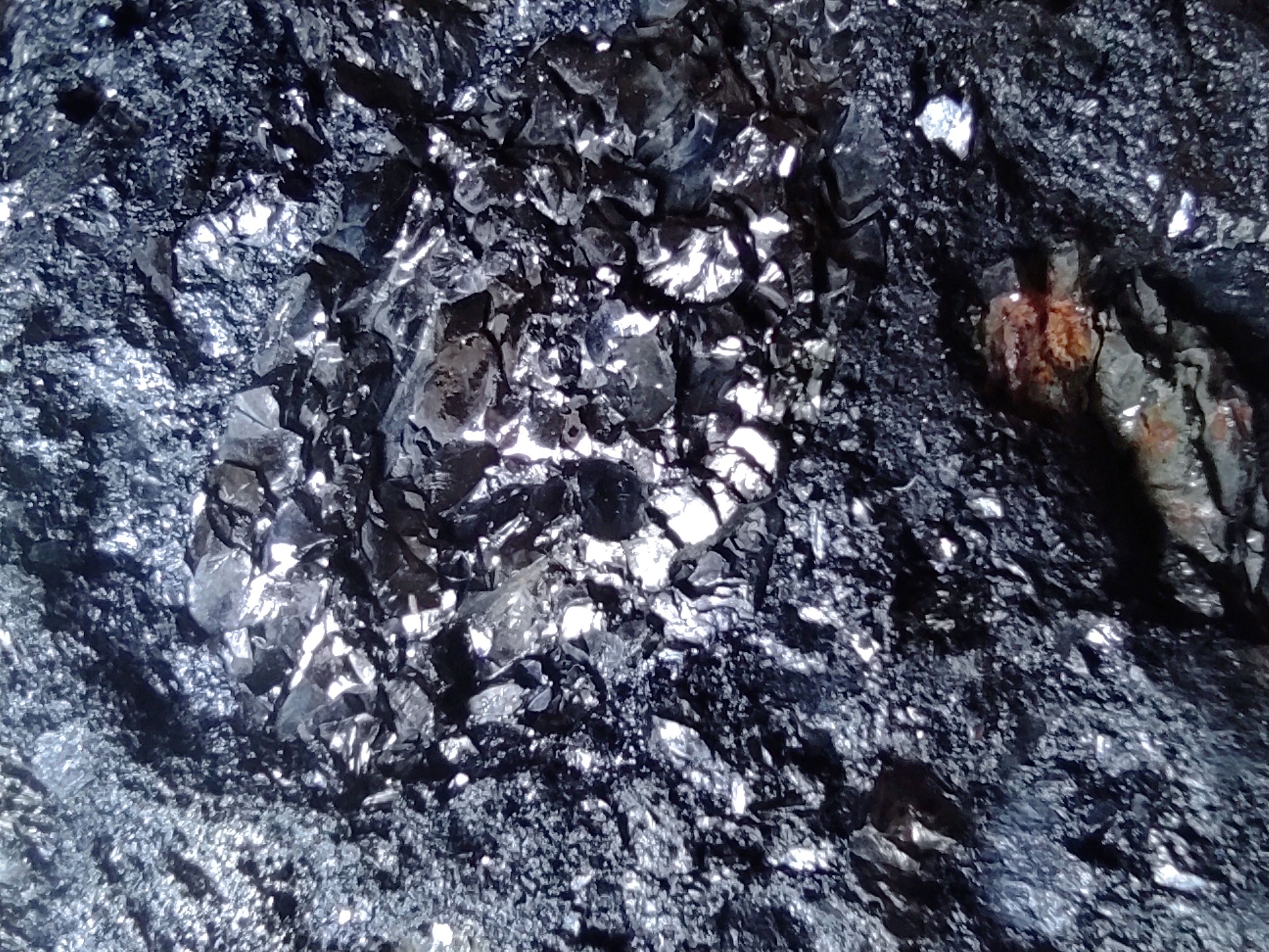5) блеска нет, включения некоторые пластинчатые, некоторые не совсем понятно, цвет включений черный с металлическим блеском, есть серебристые, есть окисленные места.